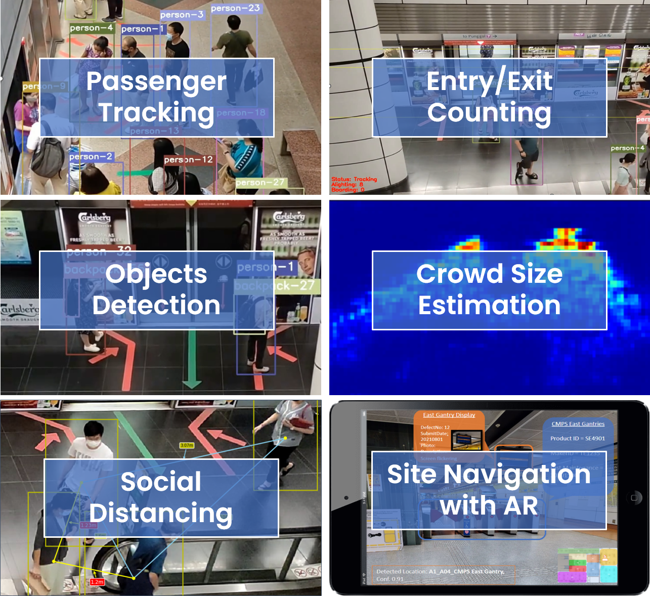 Passenger tracking, trainload analysis, object detections, crowd size analysism site navigations with AR and more.