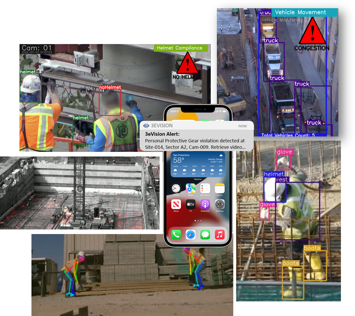 PPE Detection, Traffic Control, Assets Management, Project Monitoring, and more.