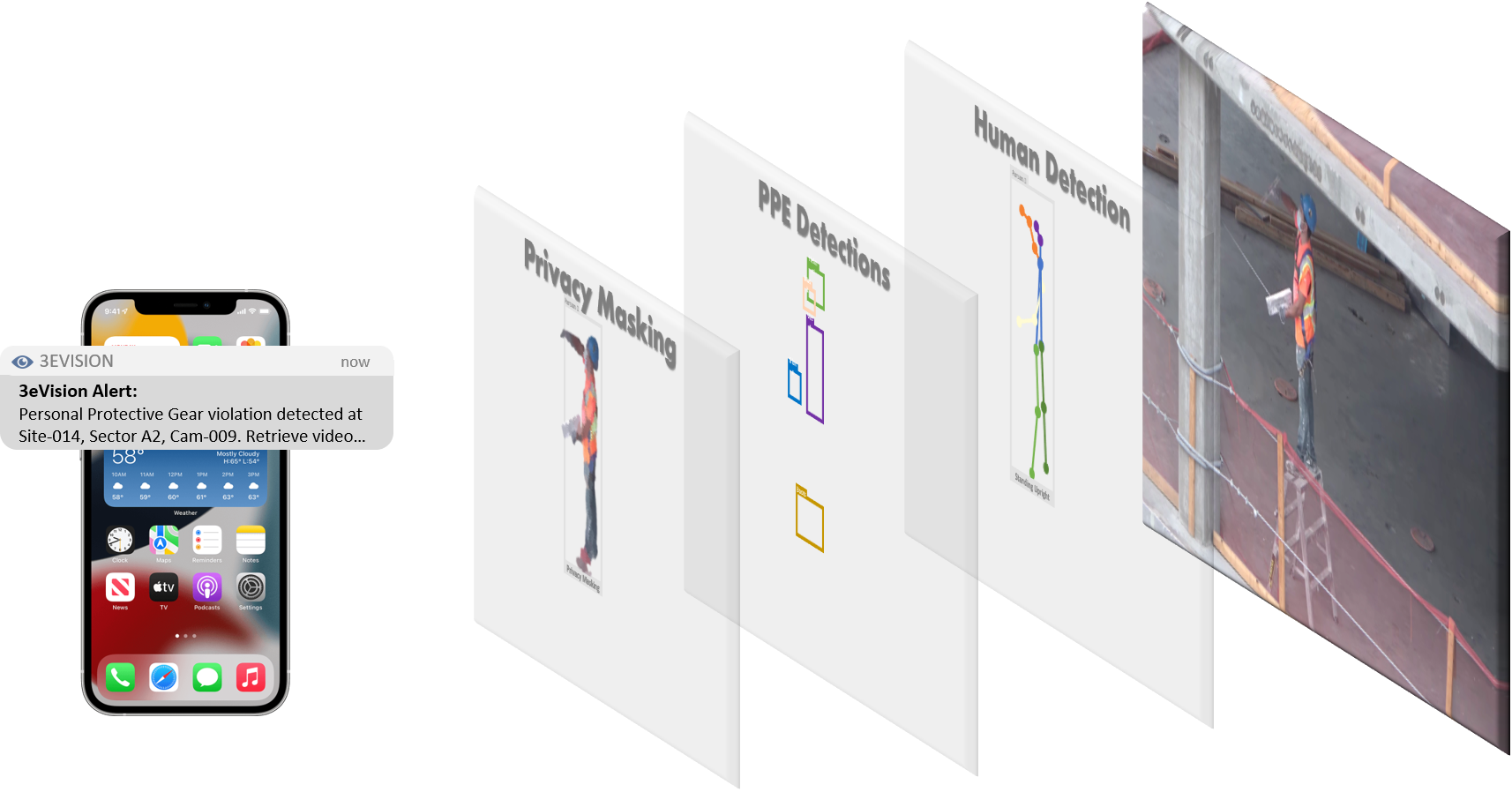 3eVision™ Worksites is an integrated site and safety management system that is powered by Artificial Intelligence, Computer Vision, and Internet of Things. It enables organizations to have a clear-sighted vision of personnel, facilities, and sites without physically being onsite. Supervisors can receive automated notifications in real-time whenever an emergency situation is detected.